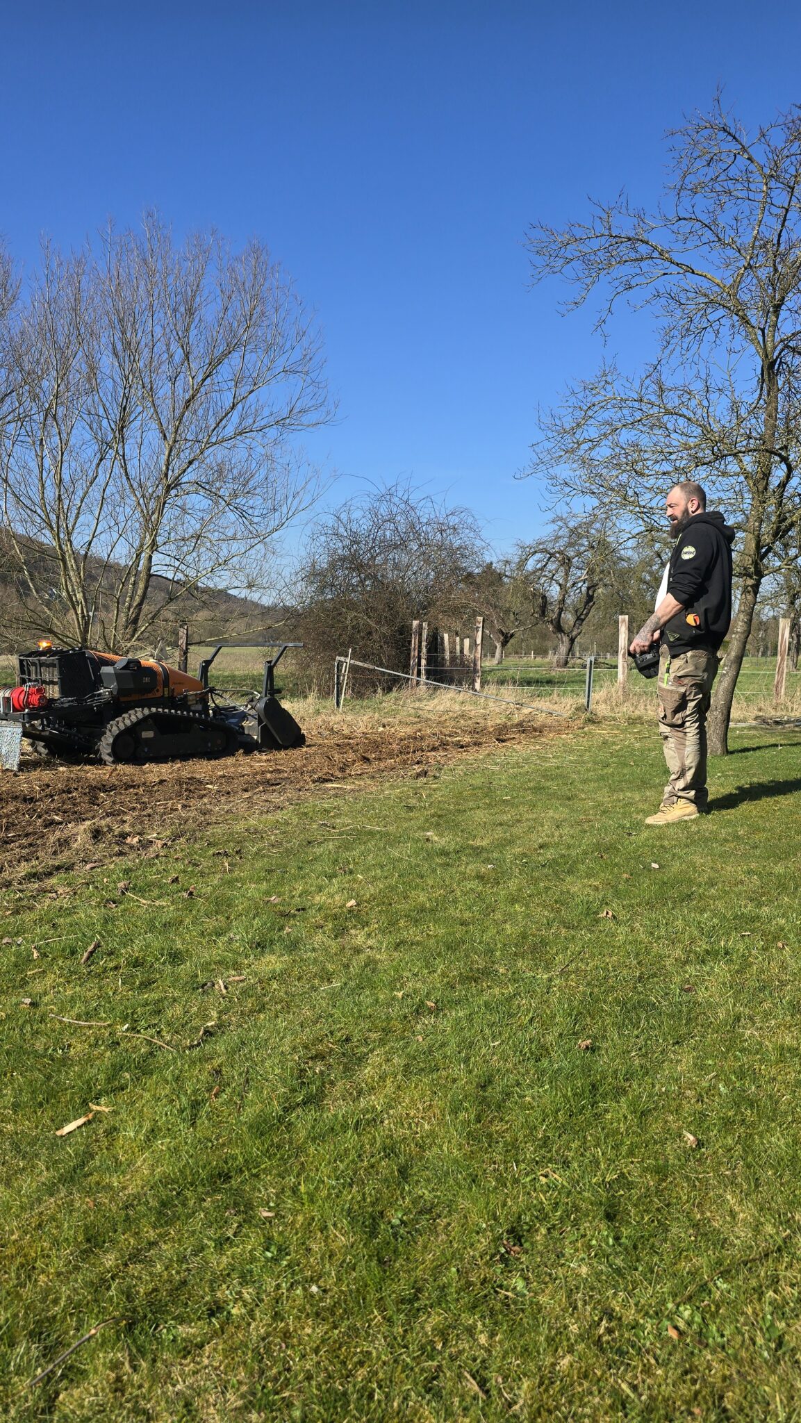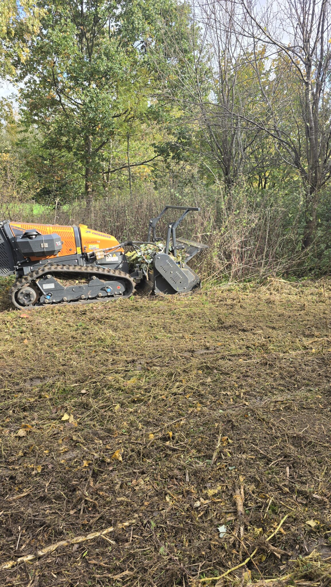 Für den Rückschnitt von Vegetation an schwer zugänglichen Trails setzen wir auf die ferngesteuerte Energreen RoboEVO in Kombination mit dem Trimmy‑Ausleger. Diese Kombination aus Fahrzeug und Ausleger vereint Sicherheit, Reichweite und Vielseitigkeit: